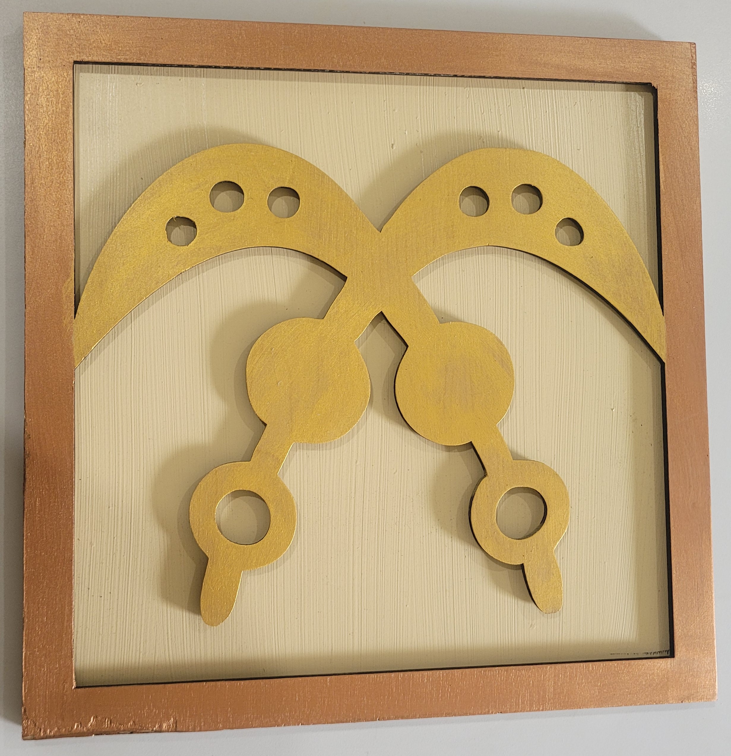 This Adinkra wall art piece is a stunning and meaningful addition to any home or office space. Inspired by traditional West African symbols, this piece showcases intricate designs and cultural heritage. The traditional Adinkra symbols are used to convey messages and stories and this piece is sure to be a talking point and add an interesting cultural element to your space. It is made of birch plywood and is painted in metallic colors.