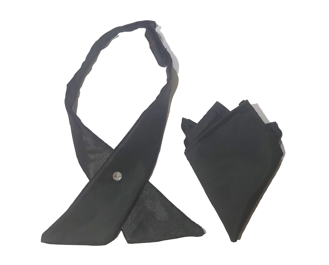 Stand out from the crowd with this black continental tie, also known as crossover tie! It can be worn with a business suit or a tuxedo. A tie pin is included to give you the flexibility to place it for different looks. Placement closer to the edge gives a flat look and placement further from the edge gives a crossover look. This set includes a pocket square for a sharp look and is a great addition to your wardrobe!